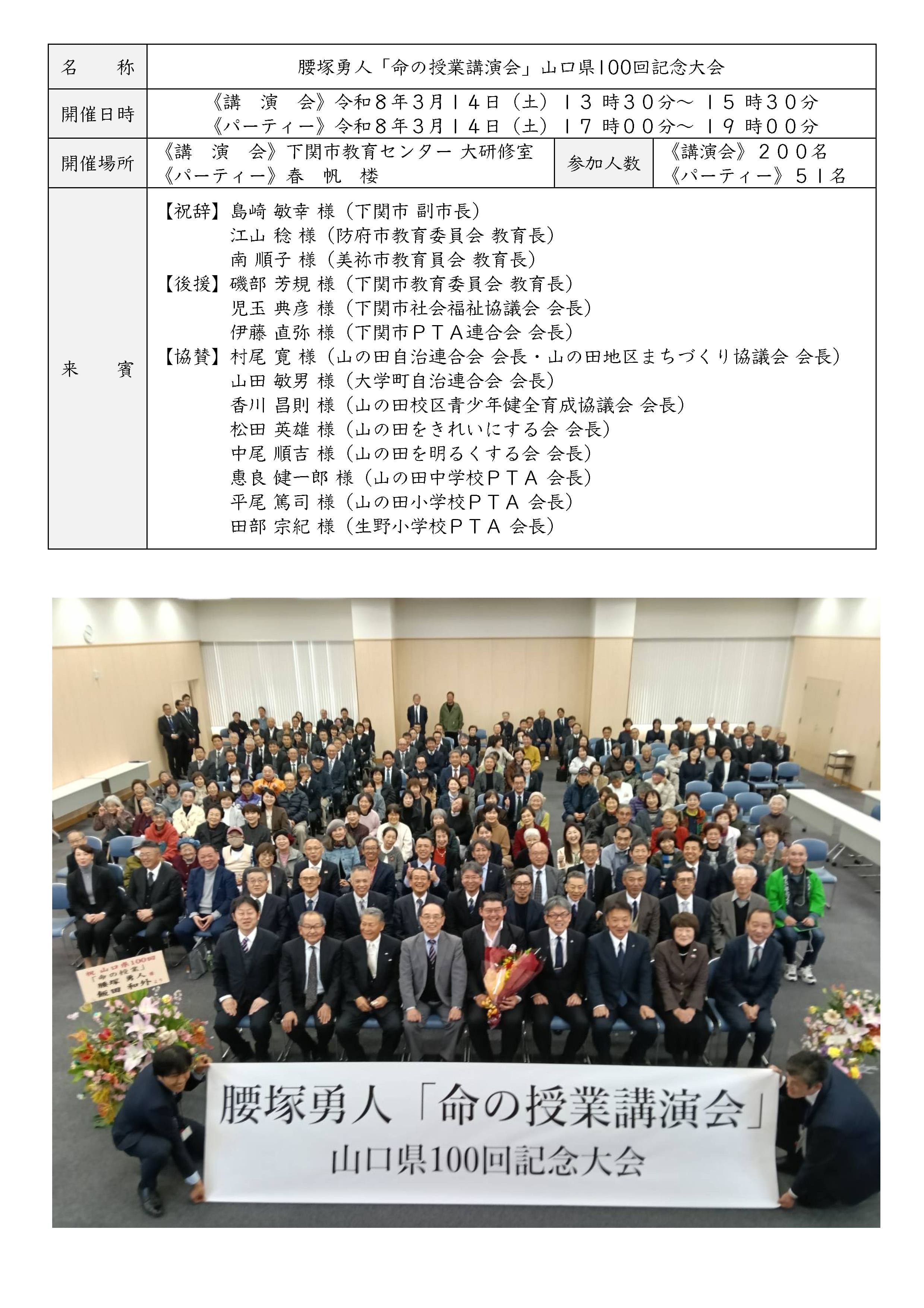 腰塚勇人『命の授業講演会』山口県100回記念大会2